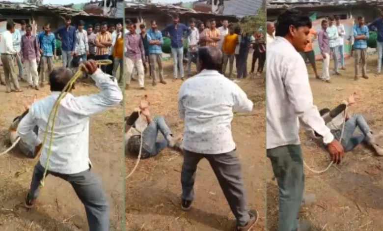 धार जिले के राजोद थाना अंतर्गत बरमंडल में युवक को रस्सी से बांधकर बेरहमी से पीटा, दिल दहला देने वाला VIDEO वायरल, पुलिस जांच में जुटी।