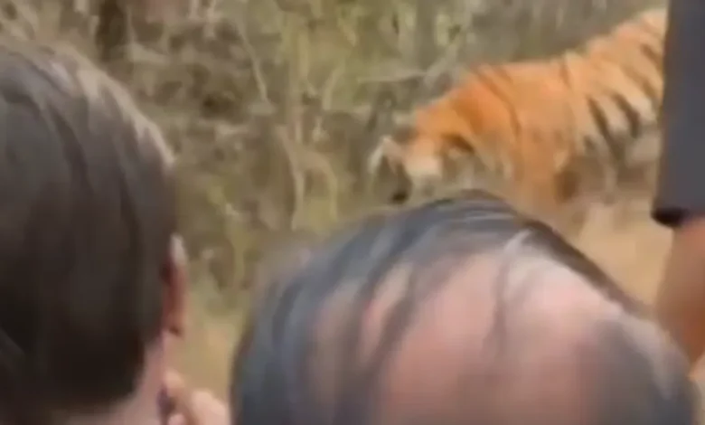 वायरल की सनक में खतरा,फिर बाघ के सामने उतरे लोग, नियमों की उड़ाई धज्जियां