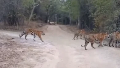 ताला जोन में टाइगर शो : एक साथ दिखे 6 बाघ, पर्यटकों की धड़कनें तेज
