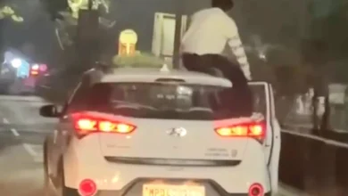 चलती कार की छत पर ‘जश्न,,ड्राइवर ने चलती गाड़ी का दरवाजा खोला